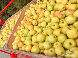 Golden 200 skrzyń po delikatnym gradzie. Jabłko zrywane nie obite grube.