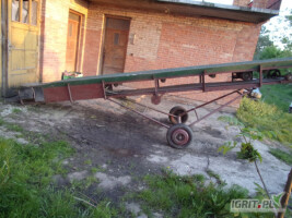 Sprzedam taśmociąg 6metrów, 50cm szerokość taśmy. Stan bardzo dobry. Mocna taśma z zabierakami. Regulowana wysokość na korbę.