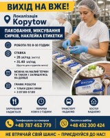 Шукаємо на 27.04.2026 4-5 дівчат На логістичний склад Обов'язки Наклейка етикет Міксування сирків Хостел надаємо Доїзд надаємо Більше інформац
