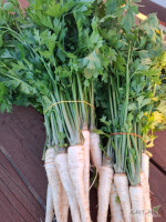 Sprzedam ładną pietruszkę młodą z natką( kaliber 2-4). Możliwość umycia i sprzedaży w pęczkach. Kopana na zamówienie.