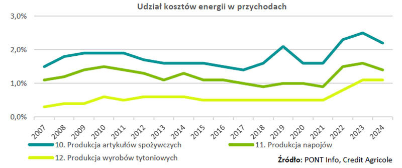 Kolejnym obszarem presji kosztowej są ceny energii, o czym świadczą relatywnie wysokie na tle pozostałych krajów UE ceny energii elektrycznej w Polsce. Co więcej są one wyższe względem kluczowych konkurentów Polski na unijnym rynku artykułów rolno-spożywczych, takich jak Hiszpania, Francja, Dania, Holandia i Niemcy. Relatywnie wysokie ceny energii elektrycznej w Polsce wynikają ze znaczącego udziału paliw kopalnych w polskim miksie energetycznym, co ze względu na stosowane przez UE instrumenty, takie jak system ETS, istotnie podraża energię w Polsce.