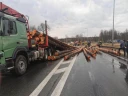Kłody drewna spadły na drogę i samochody - ZDJĘCIA