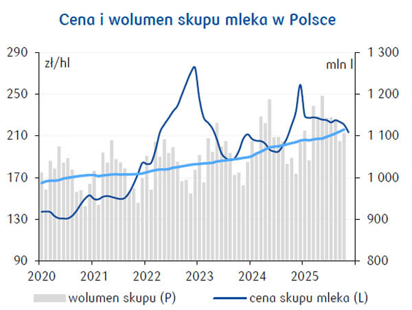 Końcówka trzeciego kwartału 2025 roku charakteryzowała się największym od 2017 rocznym wzrostem produkcji mleka u głównych światowych graczy. Presję na podaż wywierały przede wszystkim solidne wzrosty dostaw w Nowej Zelandii i w USA.