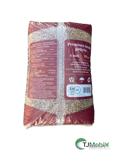 Pellet jest pakowany w wygodne worki o wadze **15 kg**. Na jednej palecie znajduje się **65 worków**, co daje łączną wagę **975 kg** + **20 kg paleta**.