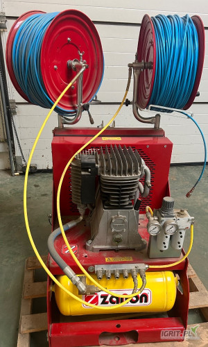 Sprężarka posiada dwa bębny do zwijania węża każdy z nich ma po 200m do sprężarki można podłączyć 6 węży na raz