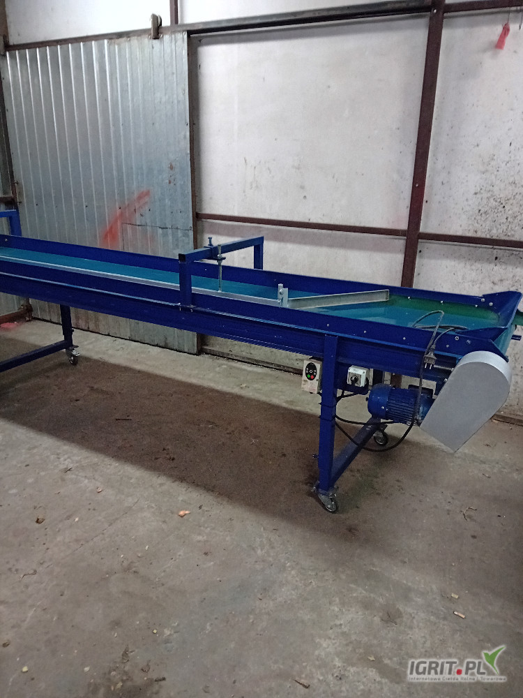 sprzedam stol przebierczy dlugosc tasmy 350cm szer 60cm plynna regulacja na obrotow nafalowniku, przegroda regulowana, wysokosc stolu regulowana, kolka workownica. malo uzywany