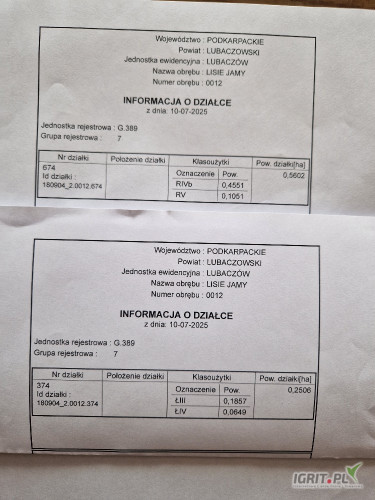 grunty rolne położone we wsi Lisie Jamy - podkarpackie, gmina Lubaczów o łącznej powierzchni 0,81 ha