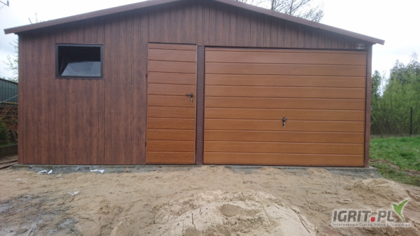 GARAŻ BLASZANY - dwuspadowy w kolorze "Ciemny dąb" (ładna imitacja drewna ) o wymiarach : 6x5m .