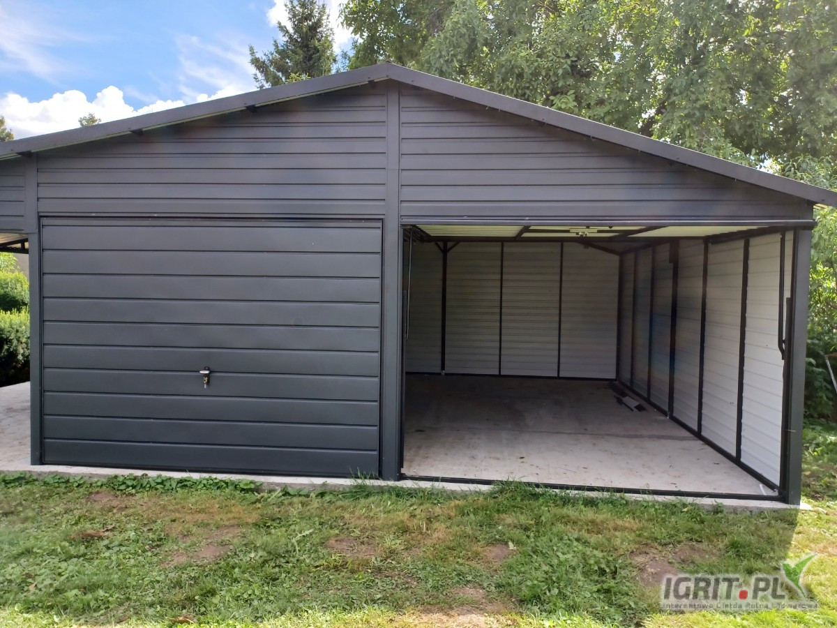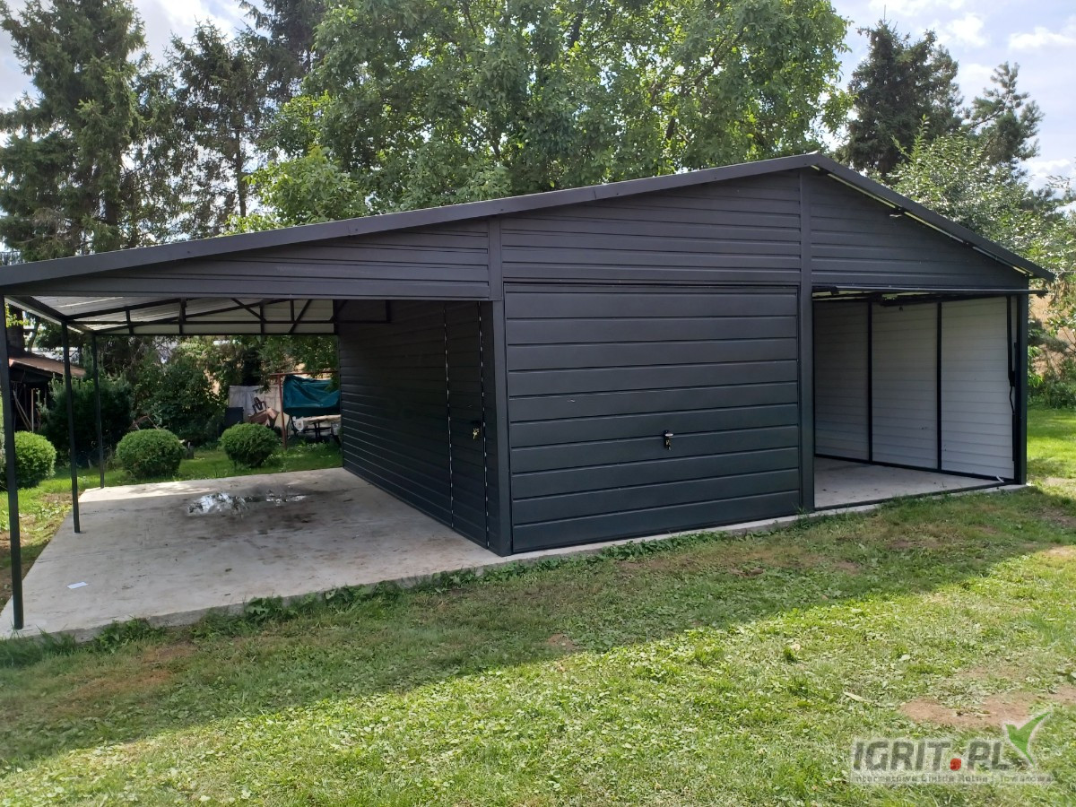 Garaż Blaszany Grafit - zadaszenie|Magazyn|Garaże Blaszane| - ROMSTAL*