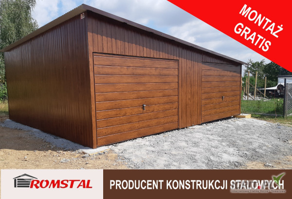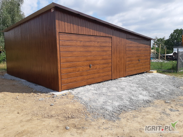 GARAŻ BLASZANY DWUSTANOWISKOWY - jednospadowy w kolorze "ZŁOTY DĄB " (ładna imitacja drewna ) o wymiarach : 7 x 6m