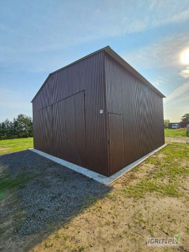 Garaż Blaszany Brązowy o wymiarach 8x6m z dachem dwuspadowym.