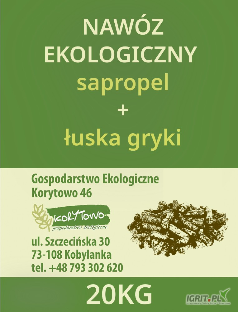 Gospodarstwo ekologiczne z certyfikatem jest producentem nawozu granulowanego 6mm. Mieszanka humusu stawowego Sapropel (minerały organiczne środowiska wodnego) + łuska gryki (bogata w fosfor, potas, magnez, żelazo, cynk, antyoksydanty). Dzięki taninom hamuje rozwój roztoczy i pleśni, utlenia glebę. Zaleca się stosować do nawożenia warzyw, owoców a także w pielęgnacji ogrodów. Skutecznie odkwasza glebę.