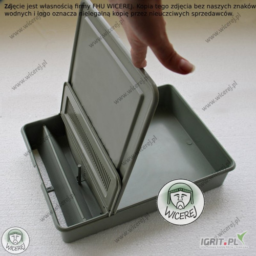 Posiadamy w ofercie podkarmiaczki skrzynkowe plastikowe o pojemności 3,5L. Podkarmiaczka posiada 2 komory, każda zamykana jest pokrywą z plastiku. Podkarmiaczka wyposażona jest również w wyciąganą płytkę odgradzającą, która oddziela powierzchnię pobierania syropu przez pszczoły od komory z syropem .
