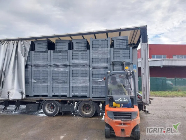 - Kompatybilność z podobnymi tego typu produktami dostępnymi na rynku - można ustawiać razem ze skrzyniopaletami innych producentów.