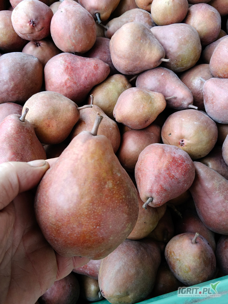 Sprzedam 3500kg czerwonej gruszki Alessia. Dziewięć skrzyniopalet. Gruszka twarda i gruba.