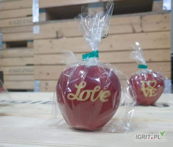 Sprzedam jabłka grawerowane z walentynkowym motywem. Do wyboru różne wzory, napisy w różnych językach.