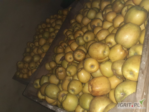 Sprzedam Glostera Goldena Mutsu łącznie 54 skrzynie jablko II klasy twarde lekka czekolada.