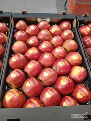 Sprzedam jabłka WALENTYNKOWE Z NAPISEM I LOVE YOU I SERDUSZKIEM na odmianie Prins jabłka ładnie wybarwione
