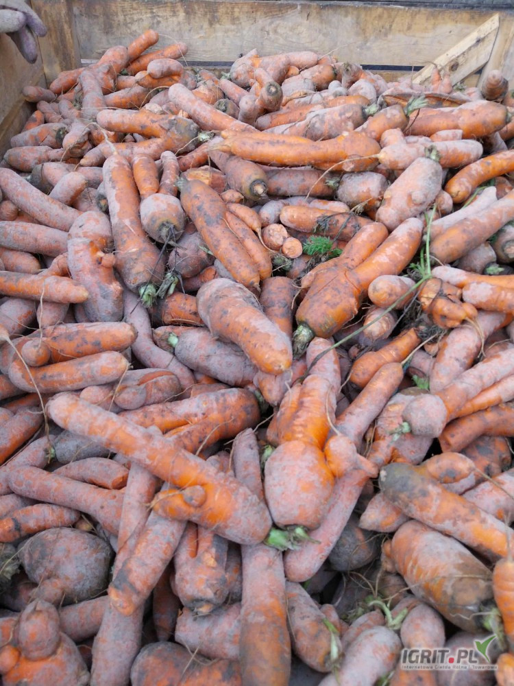 Sprzedam 25 ton marchwi z odsortu, nadającą się na przemysł lub do zwierząt myta lub brudna.