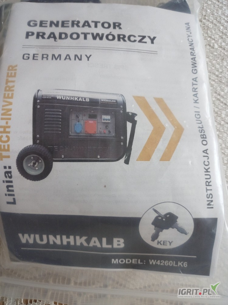 Nowy , wysokiej mocy generator prądotwórczy benzynowy Wuhnwalb W4260LK6 z technologią inwentorową. Urządzenie zapewnia stabilne i bezpieczne zasilanie w trudnych warunkach.Posiada wskaźnik poziomu paliwa , napięcia i obciążenia.ldealny domu 7.1 kw/400v i3.8 kw/230
