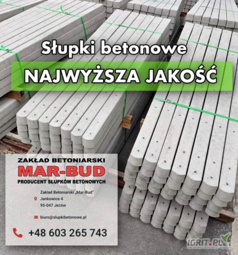 Słupy betonowe producent Mar-Bud Jankowice. Zapraszamy do zakupu solidnie wykonanych i uczciwie zazbrojonych z otworami przelotowymi na drut * Dostępne wysokości od 200 cm do 350 cm. Zapraszamy tel. ;603265743 www.slupkibetonowe.pl