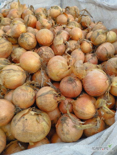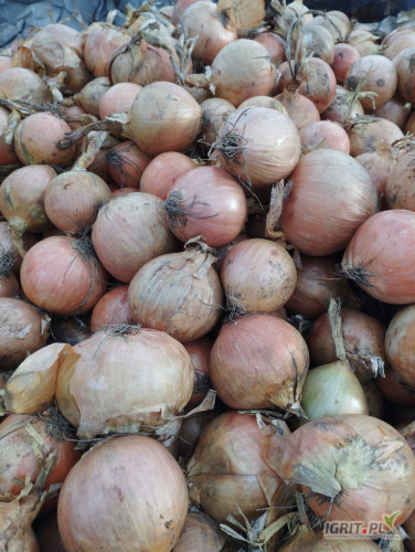 Sprzedam cebule 45-80 po koszu luz lub big bag. Ilość tirowa. Towar po obcinarce na polu jako pryzma.