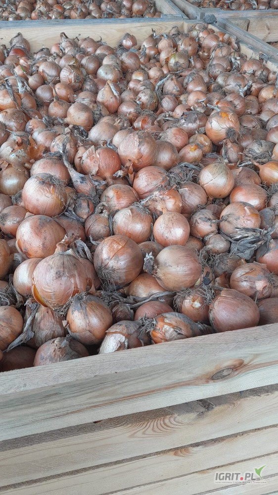 Sprzedam cebulę zdrowa sucha łuska przechowywana w skrzyniopaletach ilość 50ton cena 45gr