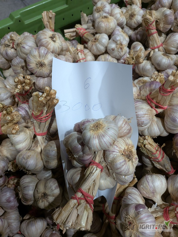 Czosnek Harnaś z chłodni w pęczku, kaliber 60-65mm, bardzo dobra jakość, bardzo atrakcyjna cena. Zapraszam do zakupu.