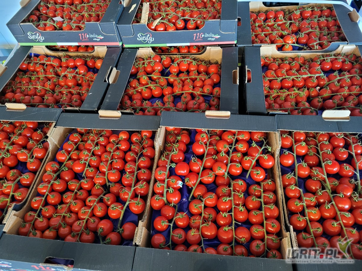 Do sprzedania ilości hurtowe włoskiego pomidora cherry na gałązce. Oferta ograniczona czasowo. Towar dostępny na giełdzie owocowo - warzywnej w Katowicach ul. Bocheńskiego 99b.