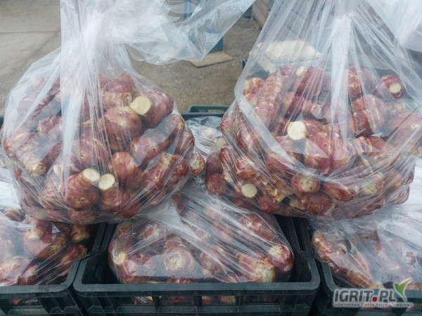 Sprzedam piękny różowy topinambur segregowany, myty, pakowany w 5kg worki.