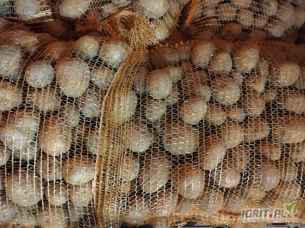 Ziemniaki Gala z jasnej ziemi szczotkowanie w worku szytym mozliwość nadruku na szarfie.