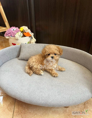 8-week-old tea-sized Maltipoo puppies are typically small, weighing around 1.5 to 2 kg. At this age, they are lively, curious and full of energy, but still very dependent on their mothers or human caregivers in search of comfort and support. Their coat is soft, silky and gradually develops into the classic long, flowing fur for which maltipoos are known. The coat color is usually a combination of brown and blue steel, with blue darkening over time. These puppies begin to explore their surroundings and can begin basic toilet training, although they still need a lot of attention and care. Their personalities are often sweet and affectionate, and they can be playful and eager to bond with their new owners. Because of their small size, they require extra care to avoid injuries.